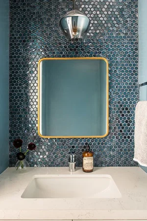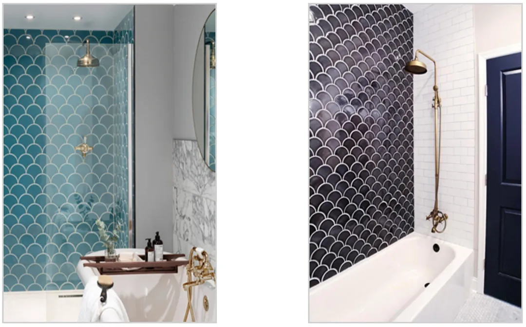 Balık pulu banyo karosu popüler kültürde çok fazla sevildi. Tasarımları hem minimal hem şık olan bu banyo karo modeli özellikle koyu renkler ile birleşince banyonuzu farklı bir boyuta taşıyacaktır.